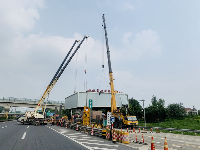 截至6月1日下午16:00时,事故收费大棚已被成功吊至安全区域,下一步进行大棚分解运走及车道机电设施恢复工作。