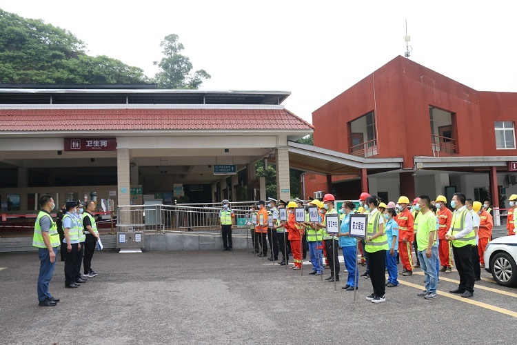 演练前,“一路三方”召开了2022年地质灾害应急演练培训会,对此次地质灾害演练流程及注意事项进行了详细讲解。此次演练模拟因连续降雨、间断性强降雨等因素诱发造成隆昌东服务区A区加油站站房后山边坡发生塌方,部分碎石滚落在加油站入口通道上,造成排水沟堵塞等场景,情况十分紧急。泸州管理处立即启动公司《地质灾害专项应急预案》,相关单位接警后迅速行动,按照各自职责进行高速公路交通灾害现场管控,养护、施工单位立即对塌方现场进行勘察,并对高边坡悬石进行处置。各参演单位组织有序、协同配合,迅速完成灾害抢险任务。