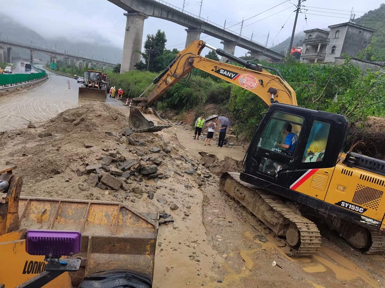 6月23日7时30分许, 受局部连续强降雨影响,泸黄高速K2214+800段约50米路基第三次被泥石流掩埋,导致成都至西昌方向道路中断。接到报告后,攀西公司党委立即启动应急预案,攀西公司副总经理王广军率公司相关部门第一时间赶赴现场展开抢险工作。