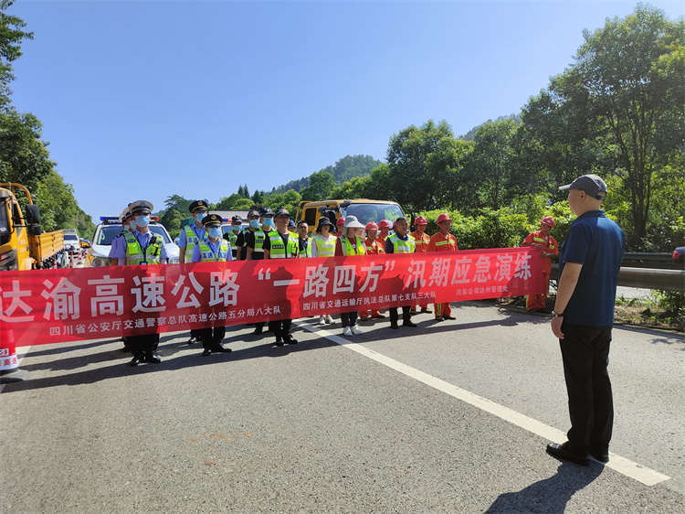 汛期来临,为切实提高“一路四方”协调联动水平,强化防汛救灾及事故处置的实战能力,确保高速公路安全畅通。7月6日,川东公司联合“一路四方”开展高速公路防汛应急演练。