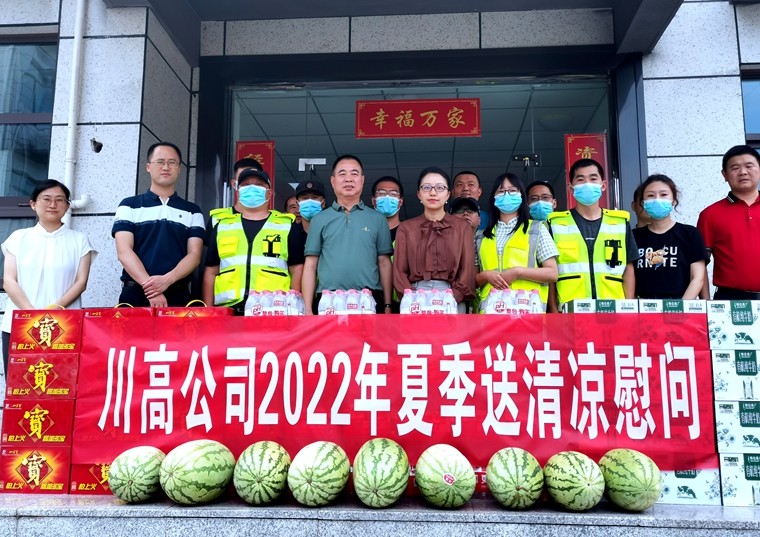 7月11日,川高公司财务总监黄璐一行到川西公司开展夏季“送清凉”慰问活动,川西公司党委书记、董事长刘小刚陪同。