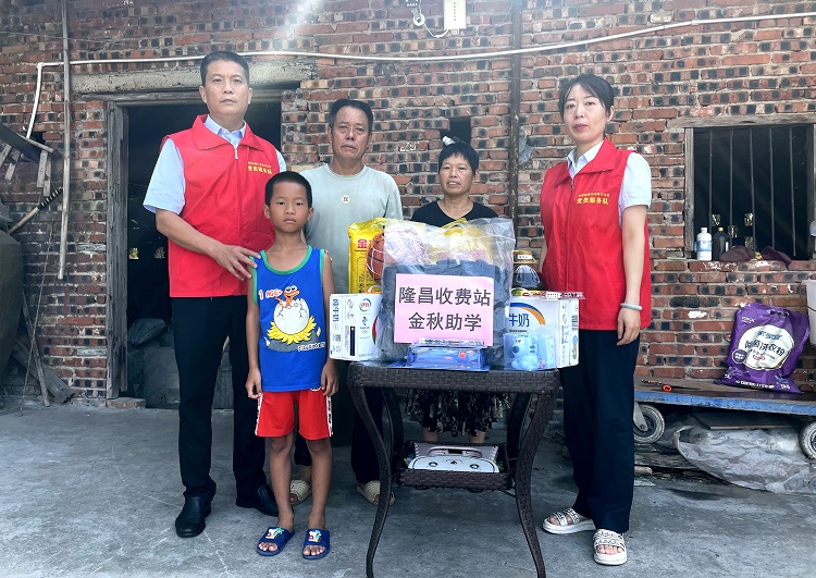 隆昌收费站志愿服务队了解到,宝丰小学二年级贫困学生魏成航学习刻苦、可爱懂事,父亲因病离世,母亲改嫁,现随爷爷奶奶一起生活,爷爷奶奶年事已高,体弱多病,收入微薄,一家人生活非常困难。志愿服务队立即赶赴孩子家中,为他送去米、油、牛奶等生活物资及开学所用书包、文具、篮球等学习体育用品。同时,帮助孩子整理书包、检查暑期作业,并鼓励他要树立信心,克服困难,好好学习,健康成长,并表示在以后将与学校一起持续关注他的生活学习情况,尽最大的努力关心、帮助他解决生活上的困难。