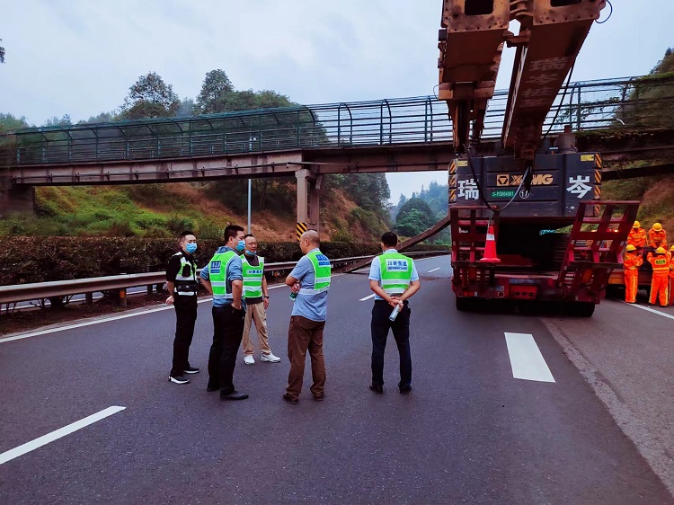 川南公司第一时间按照“人员力量到位、服务保障到位、联勤联动到位、缓堵保畅到位”的“四到位”措施,公司相关职能部门和管理处负责人迅速赶赴现场,与高速交警、交通执法等部门协调,对相关路段实施管控,联系应急抢险单位及外协施救单位,组织人员和抢险机械连夜开展应急施工,用切割机、乙炔及相应抢险等工具,拆除受损天桥,用最短的时间完成相关应急处置,安全隐患得以排除,将事故造成的影响降到了最低。