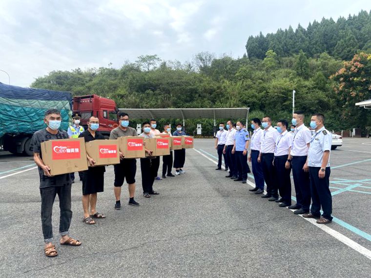 9月7日,渝蓉公司联合“一路三方”对因疫情防控原因滞留渝蓉高速公路龙泉驿服务区和简阳服务区的货车司机纾困解难送温暖,渝蓉公司副总经理刘昌明、王学权,高速交警和交通执法相关负责人参加。