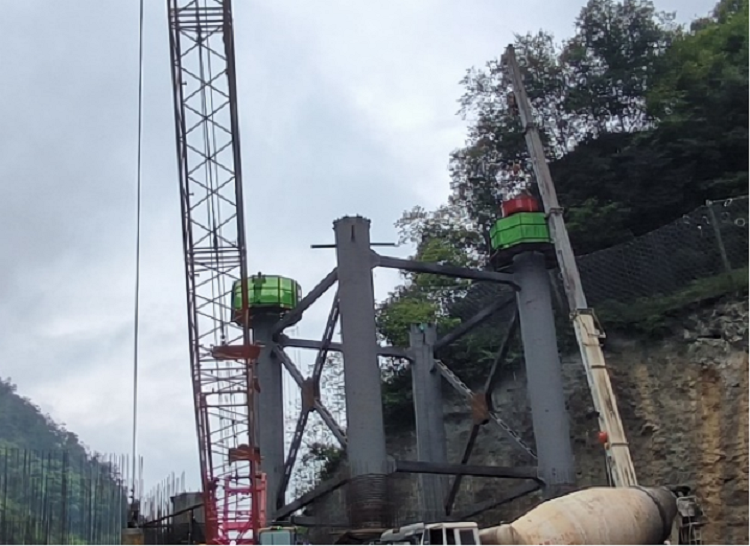 火烧棚特大桥位于雷波县双河口乡境内,全桥长495m,主桥采用 85+160+85m 预应力混凝土连续刚构桥,最大墩高135m,主墩为钢管混凝土格构空心墩,内灌C80自密实补偿收缩混凝土。为确保本次C80砼浇筑顺利完成,管理处组织参建各方反复验证C80砼工作性能,仔细研讨施工方案,为本次墩柱首件浇筑工作提供了坚实的保障,也为后续主墩施工提供了宝贵的数据和经验,确保了桥梁施工有序推进。