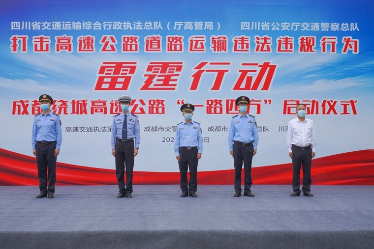 本次“雷霆行动”由四川省交通运输综合行政执法总队、四川省公安厅交通警察总队联合开展,为期30天,将重点整治“黑车”非法营运行为,以及客运包车、客运班车、外省籍大客车等在高速公路违法停车,随意转客、揽客、甩客并以此逃避防疫检查等违法违规行为,各单位与会领导在现场分别代表发言。
