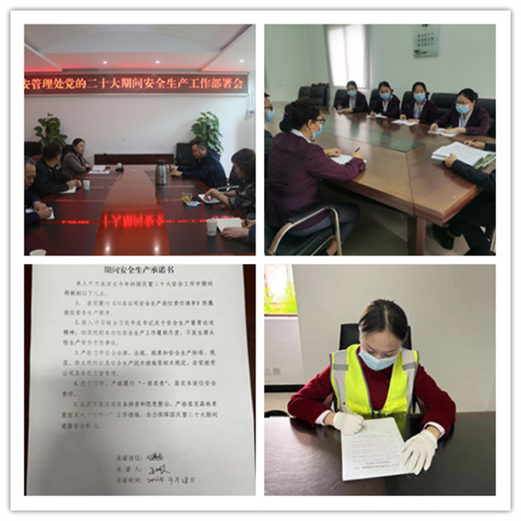 一是全面开展安全检查。重点对特殊路段的路面、路基、桥梁、隧道等运行情况,各科室安全责任清单风险防控措施落实情况及消防设施和机电设施等隐患排查情况进行检查,要求全体人员要加强风险监测预报预警,持续全面排查整治风险隐患,切实保障二十大期间安全形势稳定可控。二是强化网络舆情管控。重点对办公网络、监控网络及收费网络等进行详细检查,查看了各科室网络舆情监控和信访处理措施的落实情况,要求各科室要落实专人负责网络安全,以高度的政治使命感、责任感做好应急处置准备工作,对于可能出现的网络舆情要提前防范,快速妥善处理,避免产生不良影响。三是关注员工思想动态。通过站务会、走访询问等方式,关心关爱员工工作生活,对确有困难的员工及时给予帮助,做好矛盾化解,禁止全体员工在网络上发布不当言论,全力保障员工队伍健康稳定。四是持续筑牢疫情防线。一如既往从严从细抓好常态化疫情防控,严格出川审批程序,实时掌握员工活动轨迹,严格落实核酸检测要求,按需发放防疫物资,督促员工做好自身防护,持续巩固疫情防控工作成效。五是积极营造浓厚氛围。按照上级统一安排部署,在各收费站、服务区及沿线LED显示屏及收费站F情报上,播放展示二十大宣传标语,为迎接党的二十大顺利召开营造浓厚宣传氛围,发布各类宣传标语22条。六是保障道路安全畅通。按照高速公安和交通执法的要求,停止94标准中分带护栏改造项目涉路施工。及时维修更换道路交通事故损毁的交安设施及路面出现的病害。进一步加强道路的巡查频率,督促绿化保洁单位加强道路保洁力度;组织全员签订了二十大期间安全生产工作承诺书,累计签订393余份,全力确保二十大期间管辖道路“畅、洁、绿、善、安”。