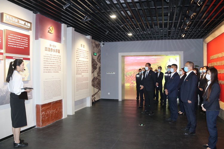 活动中,大家去到位于泸州市委党校的四渡赤水教育馆,在讲解员的带领下参观了四渡赤水篇、四渡赤水出奇兵、四渡赤水续新篇、薪火传承再出发等四部分展陈内容。通过观看四渡赤水沉浸式影片,领略了中央红军在毛泽东的正确领导下,四次渡过赤水,佯攻贵阳,威逼昆明,巧渡金沙江,摆脱敌人的围追堵截,取得了战略转移中具有决定意义的胜利。详细了解了关于中央红军长征在泸州转战54天的系列事件,特别是“鸡鸣三省”石厢子会议、白沙会议、二郎滩背水战、镇龙山奔袭战等革命先烈抛头颅、洒热血、为人民事业艰苦奋斗的事迹,让大家更直观地看到了革命先辈为共产主义理想不懈奋斗、无私奉献的精神,引导大家从红色记忆中汲取奋进力量,进一步提升党性修养。