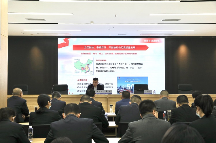 李理以《认真学习宣传贯彻党的二十大精神,推进川南公司行稳致远高质量发展》为题,结合对党的二十大精神的理解,从为什么新时代十年的伟大变革是党百年光辉历程上树立的又一座里程碑、新时代十年交通运输业驶上了交通强国的快车道、新时代新征程新使命三个方面作了解读,为公司构建高质量发展格局明确了方向,筑牢了思想基础。李理在党课中要求各支部、各部门和管理处要把深入宣传贯彻党的二十大精神作为当前和今后一个时期首要的政治任务。全体干部职工要精准把握其内涵和精髓,切实把贯彻落实党的二十大精神融入到实际工作中,充分利用全年余下时间,全力以赴冲刺年度各项生产经营目标任务。