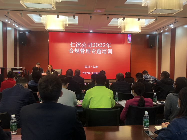 11月9日,仁沐公司特邀四川道融民舟律师事务所杜正钦律师,开展合规管理专题培训,公司领导、全体中层干部、管理人员以及站(队)负责人共计70余人通过现场和视频方式参加了培训。
