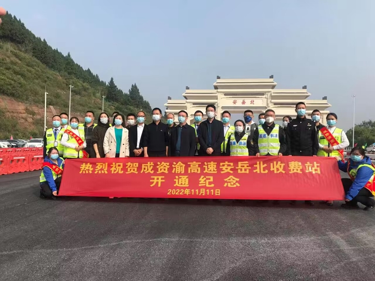 2022年11月11日12时,成资渝高速安岳北收费站正式开通,川西公司党委书记、董事长刘小刚,党委副书记、总经理何雁,党委委员、副总理雷晓云一行参加开通仪式并对下一步工作进行指导。