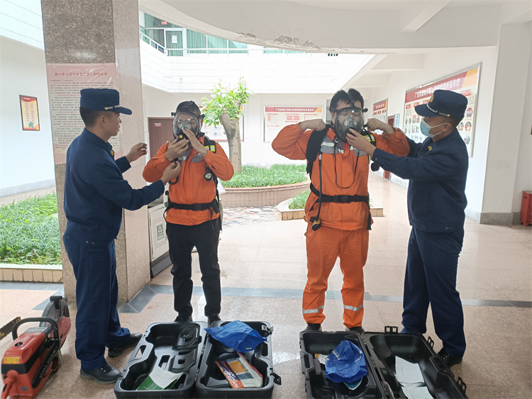 本次培训特邀请华蓥市消防大队教官现场授课,采取消防安全理论知识培训与现场学习的形式展开,详细讲解隧道火灾事故的救援难度和救援特点等,逐一介绍了便捷式排风机、油链锯、空气呼吸器等应急抢险救援器械正确使用方法,现场组织全体参训人员进行操作演练,培训达到预期目的。