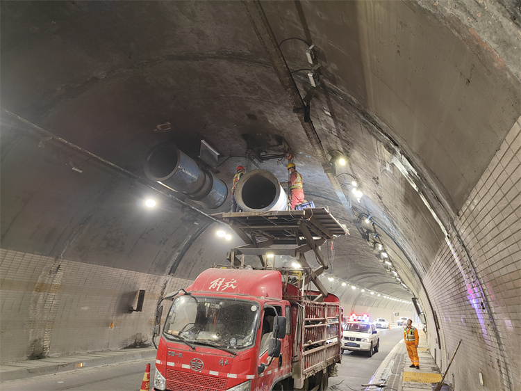 老山梁子隧道内8台15KW射流风机已建成22年,年限久远,在运行过程中多次发生故障,特别是有2台风机发生故障已无法正常运行。为保证隧道安全通行,管理处自7月开始多方询价,于11月22日聘请专业维保人员利用高空作业车对老山梁子隧道8台风机进行检修和保养,对2台故障风机进行拆装及维修、其余6台风机进行保养维护,包括清洁除尘、检查风机叶片、紧固各部螺栓、更换轴承润滑油等项目,整个过程历时2天,保证老山梁子隧道通风正常,对隧道安全行车起到了积极推动作用。