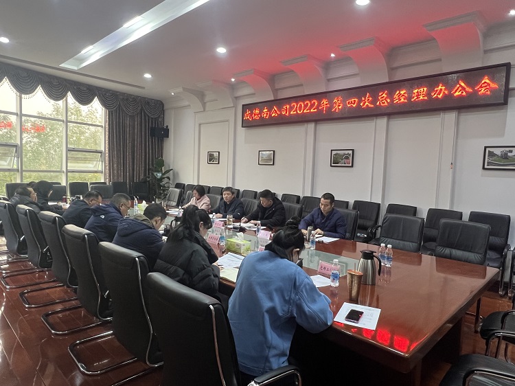 12月6日,成德南公司召开总经理办公会。会议由成德南公司党委副书记、董事、总经理杨勇主持,公司党委副书记、副总经理、工会主席张志全,党委委员、副总经理何霞,党委委员、副总经理邝习东出席会议。