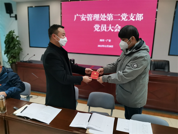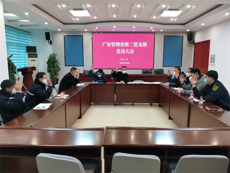 12月28日下午,川东公司广安管理处第二党支部召开全体党员大会,开展换届选举并专题讨论、审议吸收一名党员发展对象为预备党员,支部全体党员、入党积极分子参加了此次会议。