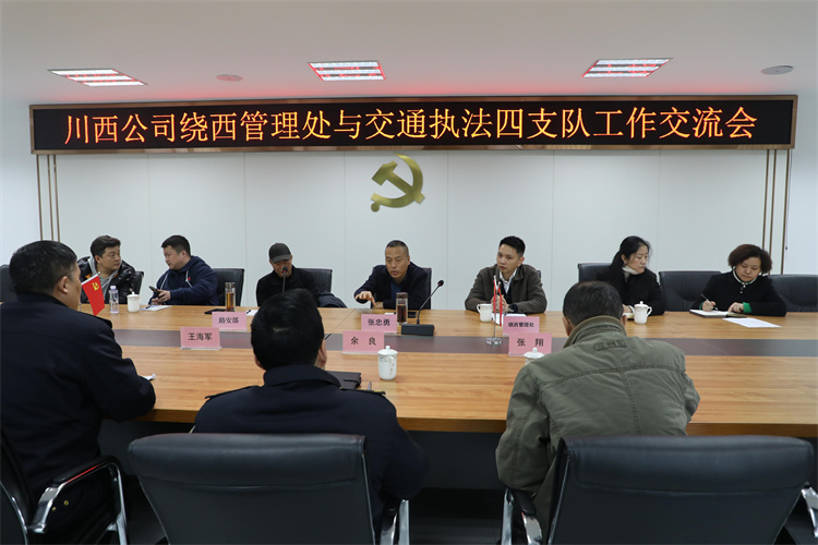 2月10日,交通执法四支队副大队长余良一行赴川西公司绕西管理处参观交流。川西公司党委委员、副总经理张忠勇,交通执法四支队纪检监察大队大队长王海军,交通执法四支队一大队大队长张翔及相关人员参加交流。