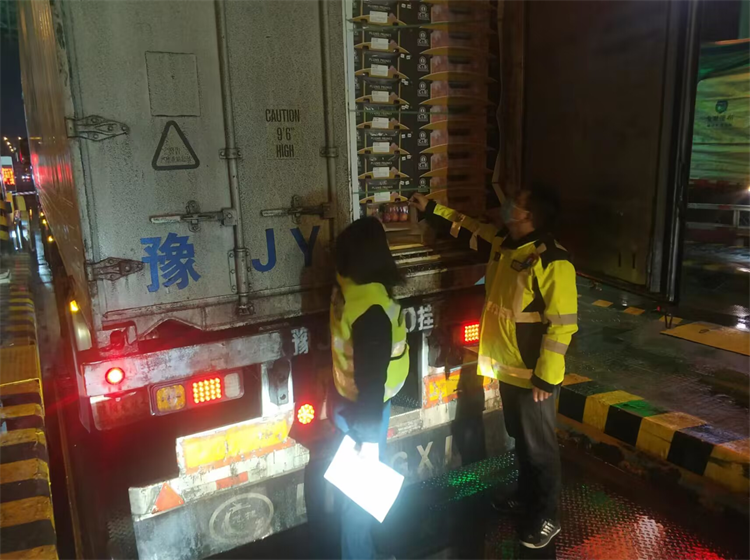 当班人员和稽查队员通宵值守车道,联合执法人员对每辆鲜活车辆进行严查,测量车辆车货总重、外廓尺寸,严格按照国家强制性生产标准《汽车、挂车及汽车列车外廓尺寸、轴荷及质量限值》(GB1589-2016)执行,超过限值不享受免费政策,正常收取通行费。2月19日-2月21日,此次专项活动共计查处33辆鲜活超限车辆,挽回通行费82000余元。