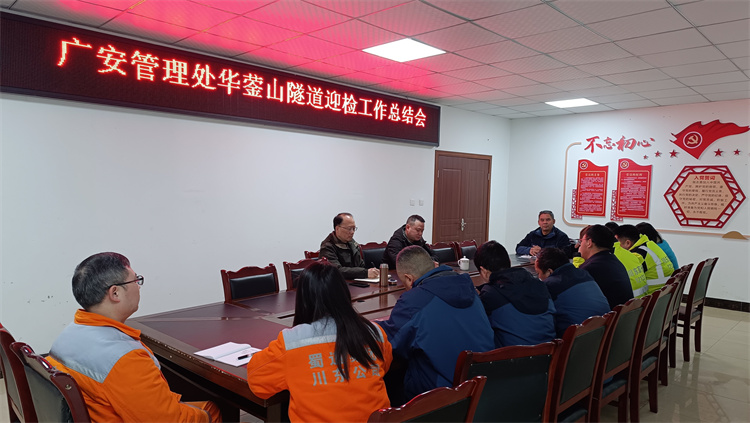 2月24日,川东公司广安管理处组织召开了华蓥山隧道迎检工作总结会,管理处处长、分管副处长、隧道管理所负责人及相关人员参加会议。
