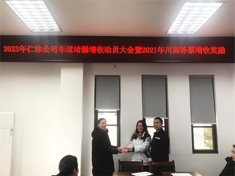 为营造仁沐新高速良好的收费环境,强化职工稽核打逃意识,充分调动职工堵漏增收积极性。营运管理部于2月28日、3月1日连续两天走访全线收费站,开展了2021年川高系统车道堵漏增收奖励返还仪式,并召开了2023年度仁沐公司车道堵漏增收动员交流会。