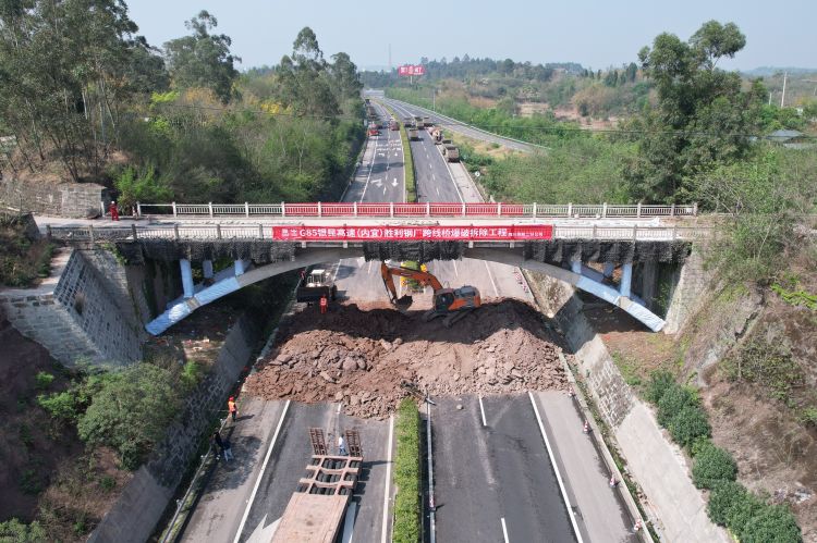 胜利钢厂跨线桥位于万家枢纽区域,交通流量大,组织实施相对困难。为安全、高效、有序地完成本次拆除,川南公司从前期规划、交通分流方案研判到各类提醒标牌安设、路网信息发布以及应急保障等方面做了科学的分析和布置,编制拆除专项施工方案,多次邀请相关单位及专家评审,制定了安全、科学、高效的拆除方案指导施工。