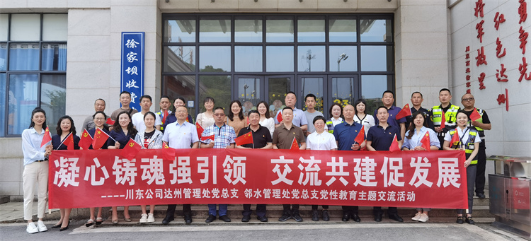 本次党性教育活动以“凝心铸魂强引领、交流共建促发展”为主题,以达州管理处党总支“请进来”,邻水管理处“走出去”的交流互学方式,以达州管理处职工育己讲堂为载体,充分利用达州市深厚的红色历史文化底蕴,达州管理处徐家坝红军文化收费站等红色资源,组织两个管理处党员、干部共计40余人参加。本次活动先后组织党员、干部参观了达州管理处徐家坝收费站、达州红军文化陈列馆、战史馆、神剑馆和张爱萍故居。两个管理处党总支书记娓娓道来,结合红军文化历史、达渝路发展历史、徐家坝建站史、个人职业发展史,实地为大家上了一堂生动的党课。