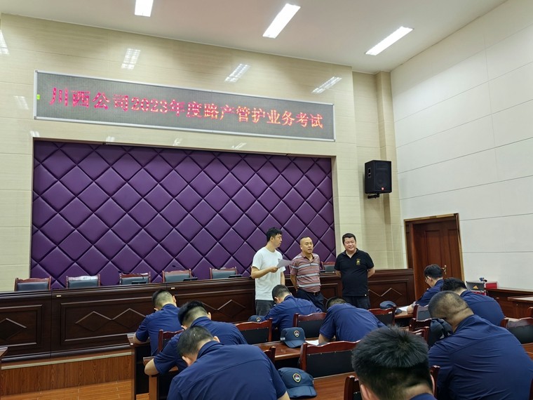 为进一步提高路产管护人员业务知识,提升路产管护技能水平和工作效率,4月20、21日,川西公司组织全体路产管护队员开展2023年度路产管护业务考试,各级路产管护人员共计100余人参加了此次考试.