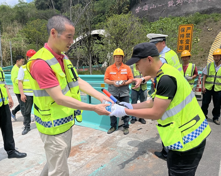 5月4日下午,成德南公司党委书记、董事长闫平会同高速公安一支队七大队负责同志赴云顶山一号隧道检查施工交通管控组织情况,并现场慰问项目参建人员,为大家送上清凉药品等物资。