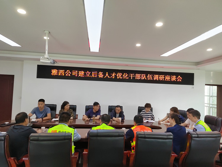 为深入开展好学习贯彻习近平新时代中国特色社会主义思想主题教育,按照开展调查研究的安排,5月17日,雅西公司党委书记、董事长于天才以“建立后备人才,优化干部队伍”为主题,“技术人才培养”为主要内容深入荥经管理处调研,并主持召开座谈会,听取了职工代表的意见建议,梳理存在的问题。