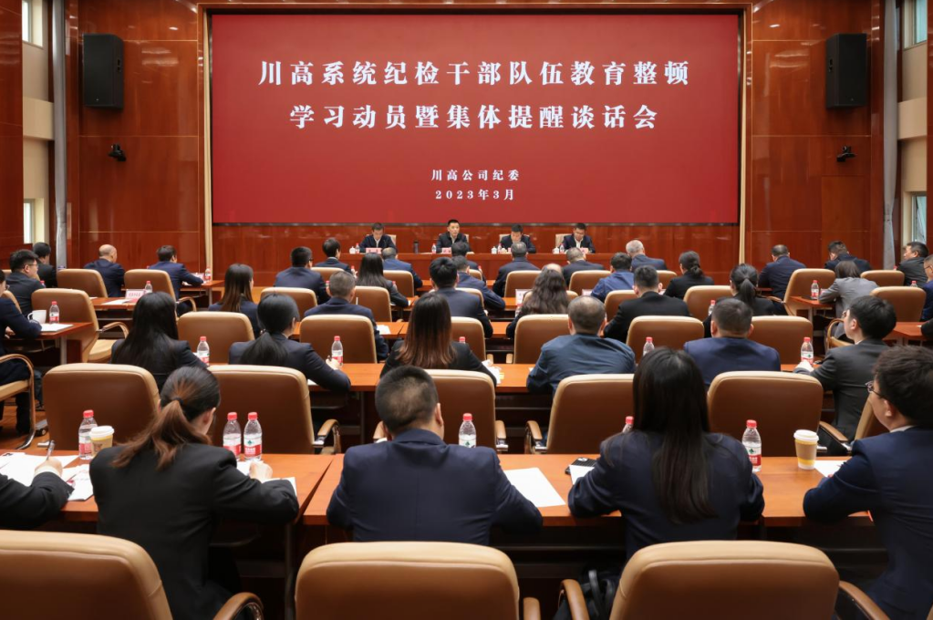 3月24日,川高公司纪委组织召开川高系统纪检干部队伍教育整顿学习动员暨集体提醒谈话会,川高公司党委委员、纪委书记主持会议并作动员提醒讲话。