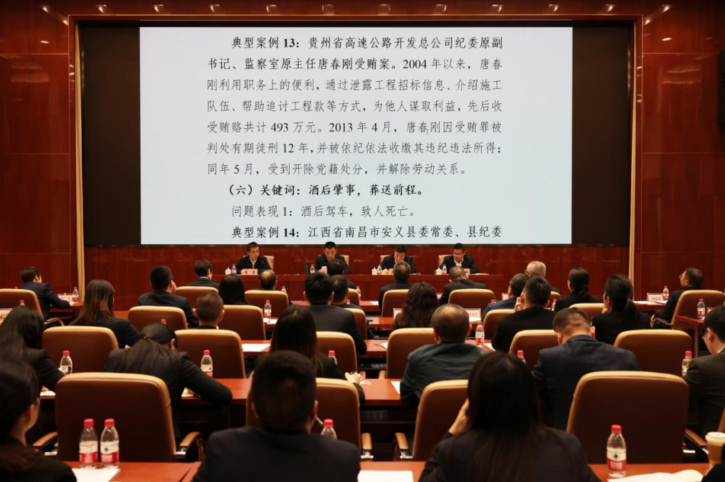 会议传达学习了中、省、集团纪检监察干部队伍教育整顿系列部署要求以及中共中央办公厅《关于在全党大兴调查研究的工作方案》,通报回顾了贵州省高速公路开发总公司纪委原副书记唐春刚等24起上至中央副部级下至地方副科级纪检监察干部违纪违法典型案例,重点针对川高系统纪检干部队伍教育整顿工作进行了动员部署,同步开展了集体提醒谈话。