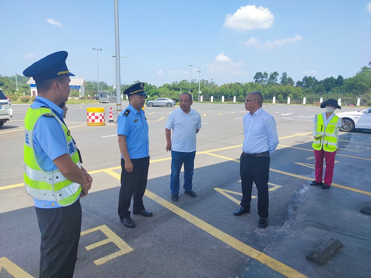 5月23日,省交通执法总队第四支队二级高级主办马斌一行督导仁沐公司路域环境整治推升工作,仁沐公司党委委员、副总经理陈晓亮等相关人员陪同。