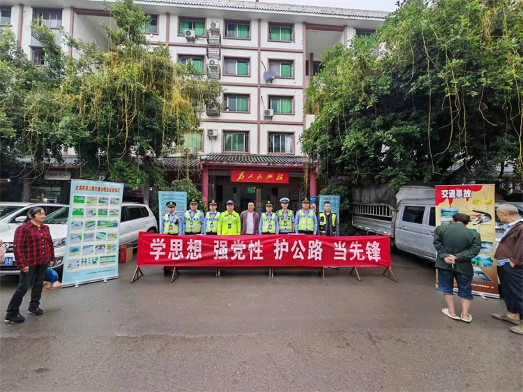 5月26日,川东公司联合高速公安、交通执法、地方道安办“一路四方”深入大竹县石河镇,开展“学思想、强党性、护公路、当先锋”主题交通安全宣传活动。