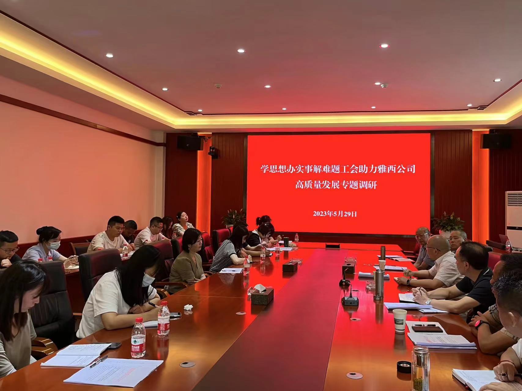 为深入开展学习贯彻习近平新时代中国特色社会主义思想主题教育,按照开展调查研究的安排,5月29日,雅西公司党委委员、副总经理、工会主席刘春组织开展“学思想 办实事 解难题 工会助力雅西公司高质量发展”专题调研,并主持召开座谈会,广泛听取意见建议,了解职工群众烦心事揪心事操心事,研究解决措施。