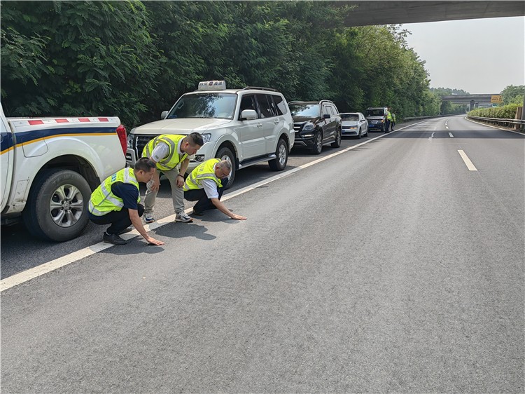 调研组一行着重查看了南渝路路面抗滑度、路面车辙性能、路侧刺铁丝网锈蚀损坏、绿化侵线等情况,深入了解南渝路全线的管养现状,提出相关处置措施。