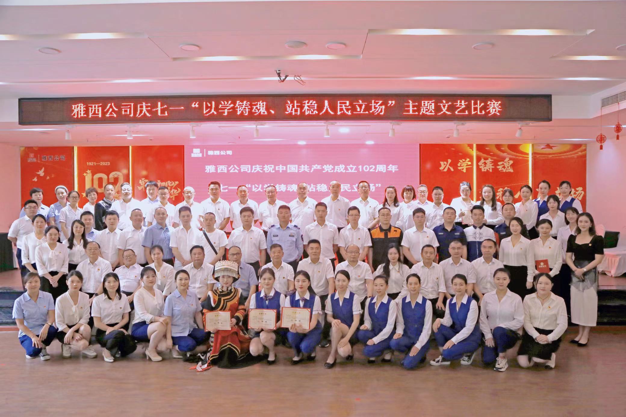 6月28日,雅西公司举办庆七一“以学铸魂 站稳人民立场”主题活动文艺比赛。公司领导班子成员、各党支部书记、支部委员、各支部普通党员代表、公司部门负责人、各党支部党务工作者、参赛选手、入党积极分子、发展对象共90余人参加活动。