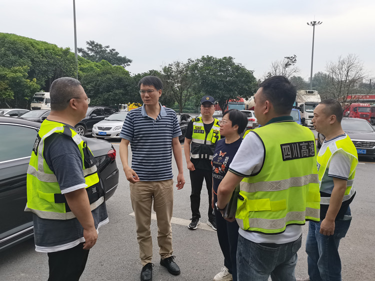 陈石一行现场了解了大竹服务区安全生产、环保工作等落实情况,重点对服务区用气、用电安全、过夜车辆排查、危化品车辆登记及污水处理设施运行、垃圾清运处理等情况进行了督导检查,同时查看了服务区微型消防站、配电房、电动汽车充电站、餐饮库房等现场管理情况。