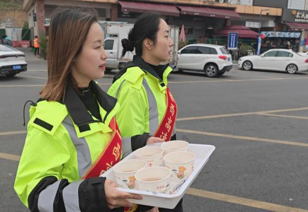 为了让司乘朋友提前感受到春节喜庆的节日气息,荥经服务区“暖心之家”悬挂红灯笼,张贴对联,活动当日,荥经服务区工作人员一早就开始忙碌起来,挑选上等的红枣、核桃、红豆、小米、枸杞、花生、糯米等材料,熬制了热气腾腾、软糯香甜的腊八粥,把精心熬制的腊八粥一碗碗免费送到货车司机手中,让每一位过往的司乘人员都能在严寒冬日感受到家的温暖。货车司机接过一碗碗热乎乎的腊八粥,大家都露出了幸福的笑容,司乘朋友不禁竖起了大拇指。一位来自东北的货车司机陈师傅说道:“谢谢你们给我们过腊八节,我们已经在高速公路跑了一个星期了,都忘了今天是腊八了,没想到今年在你们这里还能喝上腊八粥,真是太感谢了!”工作人员连忙为李师傅介绍“暖心之家”服务功能,并邀请李师傅关注“蜀道畅”APP小程序实名注册。在这寒冷的季节,大家共同分享节日的美食、共享幸福的味道,品味着吉祥的年味儿。