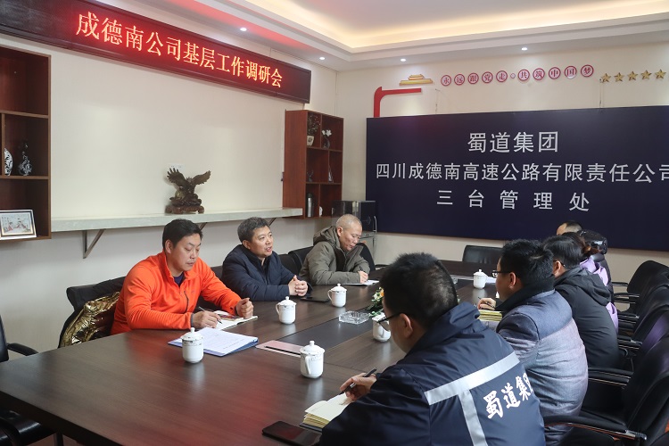 杨勇一行来到三台管理处,围绕路产管护、监控中心、收费、服务区等工作情况开展调研,听取了基层一线人员工作情况汇报,对监控中心罗贵芳在工作中表现的良好职业素养给予了表扬,同时称赞三台路产管护队员帮助司乘人员更换轮胎受到致电感激的事迹,体现出了“事虽小、但情真”的暖心服务意识。杨勇充分肯定了三台管理处在长期工作中能克服人员不足等困难,不断强化队伍凝聚力,在春运期间高效统筹安全保障工作机制,持续深化应急机制创新,同时优质服务执行落实到位,管理处领导班子团结一心。他希望三台管理处持续发挥高效执行力优势,为春运期间道路保通保畅及司乘人员暖心服务工作再创佳绩。三台管理处处长陈洲表态,感谢公司领导开展调研,倾听管理处及一线工作人员心声,三台管理处坚决贯彻公司各项工作部署,坚定攻坚克难思想,作为管理处主要负责人,力求以身作则,带领队伍全力以赴为公司发展贡献成德南力量。