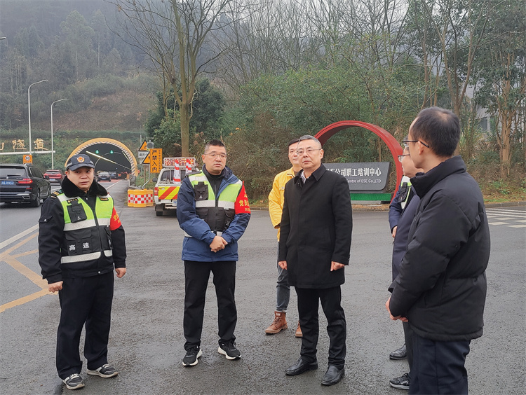 为深入贯彻落实蜀道集团、川高公司关于安全生产的安排部署,确保春节期间安全生产形势稳定,2月7日,川东公司党委书记、董事长郑永雄,党委副书记、总经理杨松带队深入一线开展春运工作督导检查,安全总监黄长才、安全环保部及各管理处相关人员陪同。