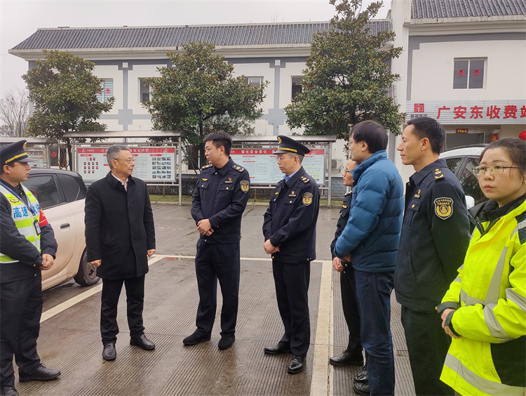 2月7日,省交通执法总队(厅高管局)副总队长(副局长)、党委副书记聂红峰一行对川东公司春运保通保畅安全工作进行了督导检查,公司党委书记、董事长郑永雄,交通执法第七支队党委书记、支队长曾衍家,副总经理陈石、公司资产经营部(综合开发部)、安全环保部、广安管理处等相关人员陪同。