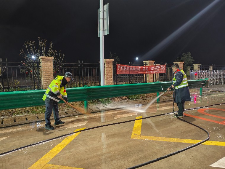 2月29日晚22时许,管护大队值班人员接监控中心电话,被告知在回龙收费站内广场发现大量油污,现场未发现泄漏车辆,泄漏油污已影响收费车辆通行。接警后,管护队员立即奔赴现场进行临时管控,通过设置警示标志渠化道路,对收费站道口进行管控,引导后方车辆有序通行。同时,管护队火速配合收费站、养护单位冲洗路面,清理泄漏油污,以最快速度恢复收费站通行秩序。通过对收费站监控视频调取排查,最终锁定嫌疑车辆为一辆车牌为豫C的半挂牵引六轴罐车,并将收集的相关证据提供给高速交警。
