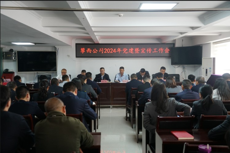 2024年3月20日,攀西公司召开2024年党建暨宣传工作会,全面贯彻习近平新时代中国特色社会主义思想和党的二十大精神,回顾总结2023年党建工作,安排部署2024年重点工作任务。公司党委书记、董事长刘严才出席会议并讲话,公司党委副书记、总经理杨九明主持会议。公司党委党委委员、工会主席、副总经理胡冰作题为《筑牢根魂优势 强化党建引领 为推动公司高质量发展提供坚强政治保障》的工作报告。