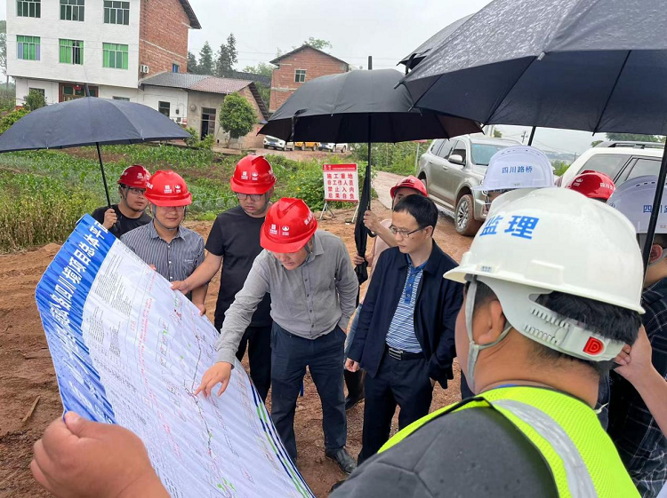 杨松一行重点查看了高穴互通、铜锣山隧道进口与产业工人园区现场情况,了解询问各标段针对防汛物资准备与“叫醒叫应”机制执行情况,听取了各标段“五一”节假日期间的值班值守与施工计划安排。