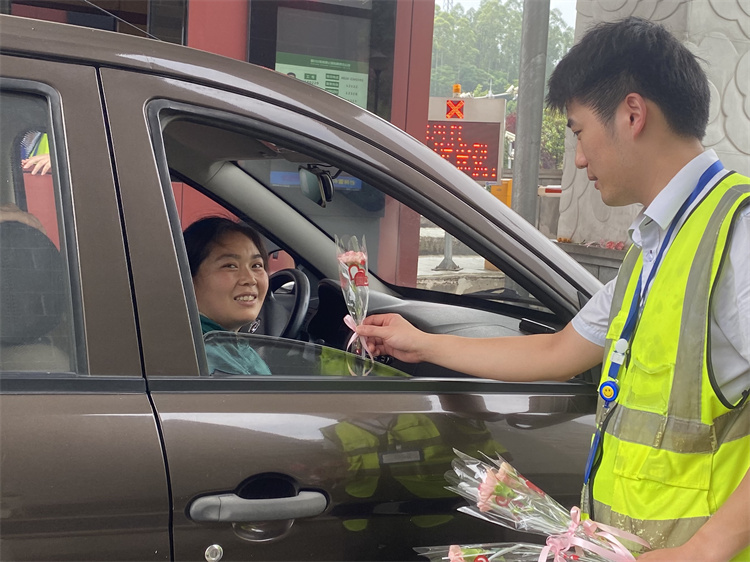 送一束鲜花。辖区部分收费站组织团员青年们一大早就拿着一束束康乃馨,向过往收费站的女司乘发放节日礼物,送上节日祝福语,同时为已经成为母亲的当班收费员工送上花束,让她们感受到了节日的祝福和“家人”的温暖。