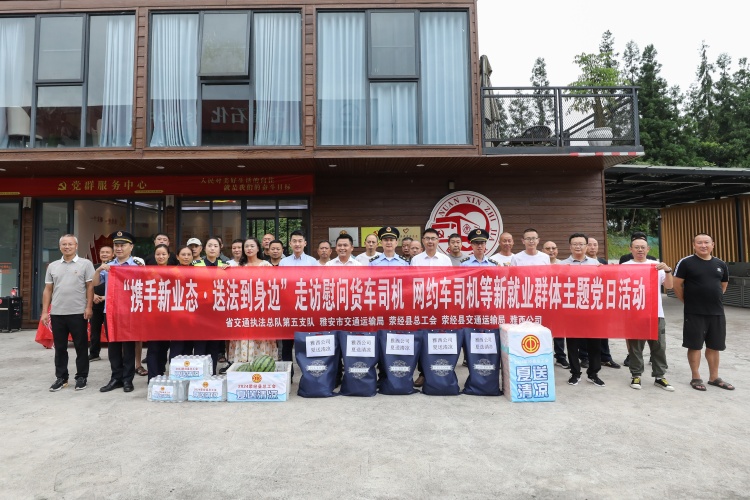 为深入贯彻落实党的二十大精神,加强新就业群体党建工作,落实党和政府对货车司机、网约车司机群体的关心关爱,进一步引导新就业群体听党话、感党恩、跟党走,营造更加和谐、法治的从业环境,按照蜀道集团、川高公司相关工作要求,7月4日,雅西公司携手省交通执法总队第五支队、雅安市交通运输局、荥经县工会在荥经服务区货车司机“暖心之家”举办“新业态·送法到身边”主题党日活动,将法律的温暖,党的关怀直接送达奔波在雅西高速公路上的司机朋友。