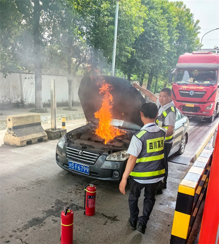 ——心系群众 消防救火“安全员”。26日11时08分,车牌为川SF67**黑色小轿车驶入百节站,途经秤台时车辆熄火并冒出黑烟无法驶出,当班收费班长迅速判断该车即将着火,让驾驶员将车辆退出秤台后立即拿出车道存放灭火器实施灭火,随后在当班工作人员的协助下扑灭火情。