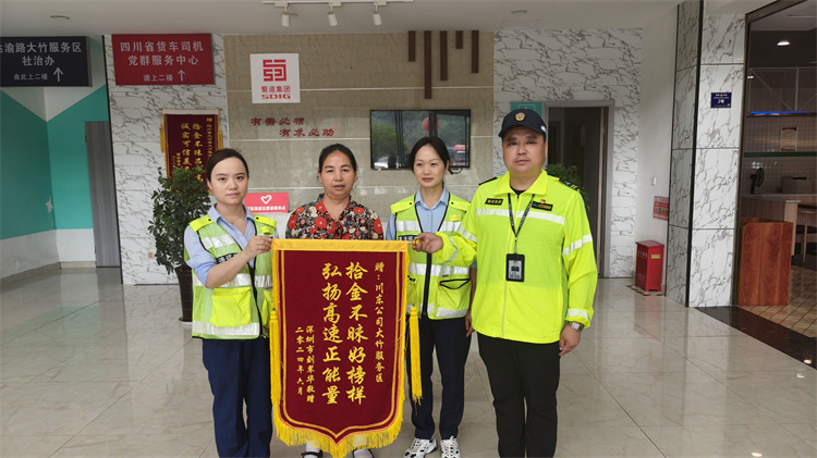 ——微光成炬 拾金不昧志愿者。20日10时许,大竹服务区工作人员在例行巡查女厕所时,捡到一部苹果手机。工作人员主动联系到失主,失主收到消息后赓即从重庆赶到大竹服务区,工作人员完璧归赵,将手机归还给失主,失主感激不尽,后来向服务区赠送了锦旗。