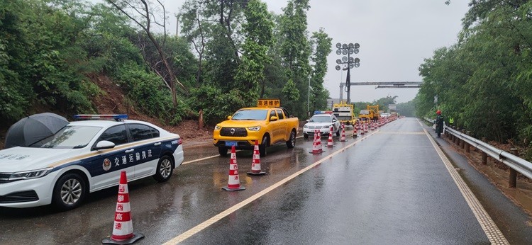 科学决策,果断实施交通管制。上午8点30分许,因持续降雨,攀西高速西昌至米易2380KM+200M大量泥浆积于路面,影响车辆安全通行。面对严峻的雨情、汛情和紧迫的防汛形势,攀西公司党委迅速调集应急救援力量,与时间赛跑,与风雨抗争,联合高速公安、交通执法等相关单位迅速研判决定对白马至米易路段实施交通管制。