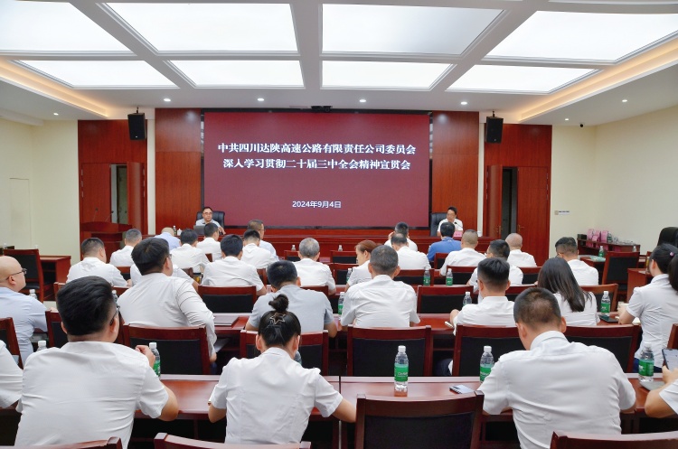 为深入学习宣传贯彻党的二十届三中全会精神,深刻领会全会精神实质、核心要义和总体要求,9月4日,达陕公司党委举办学习贯彻党的二十届三中全会精神宣贯会,公司领导班子成员、党支部书记、全体中层干部和党员代表参加会议。