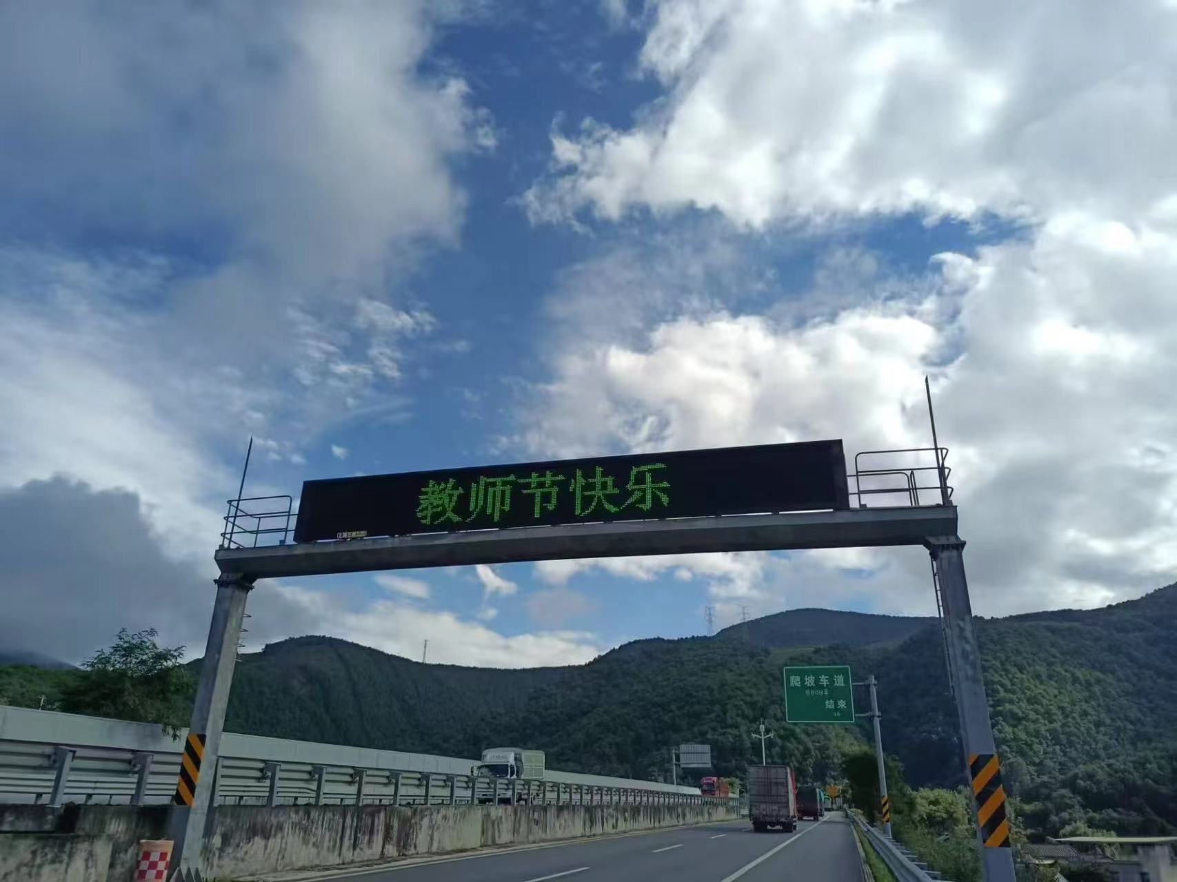 9月10日是我国第40个教师节,今年教师节的主题是“大力弘扬教育家精神,加快开元棋牌教育强国”。在教师节来临之际,雅西公司全力营造浓厚氛围。一是全线辖区办公场所和公共场所利用电子大屏展播《教育家精神》《同行一程 感恩一生》微视频;二是在9号-10号夜间20时至21时,利用户外大屏和LED情报板以“老师,您辛苦了!”等宣传标语为主题,为教师亮灯1小时公益活动;三是利用公司微信公众号发布相关宣传报道,大力弘扬赞美教师躬耕教坛、无私奉献的崇高师德,弘扬全社会尊师重教的良好风尚。